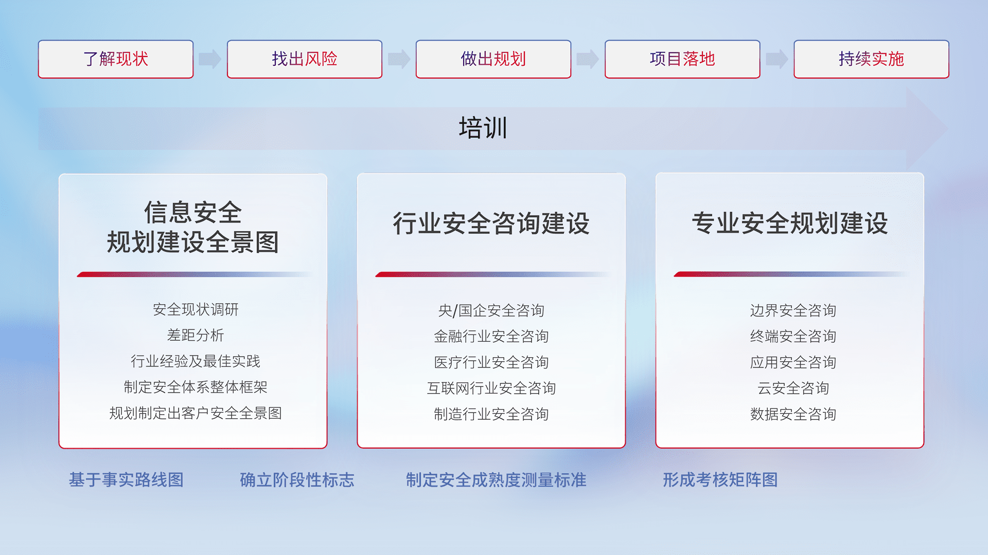 梳理客户信息安全现状调研、、、差距分析结果,,,,结合行业先进经验及最佳实践,,,,制订客户的信息安全管控体系总结架构,,,,最终形成一个完整的客户信息安全规划与建设的全景图。。。