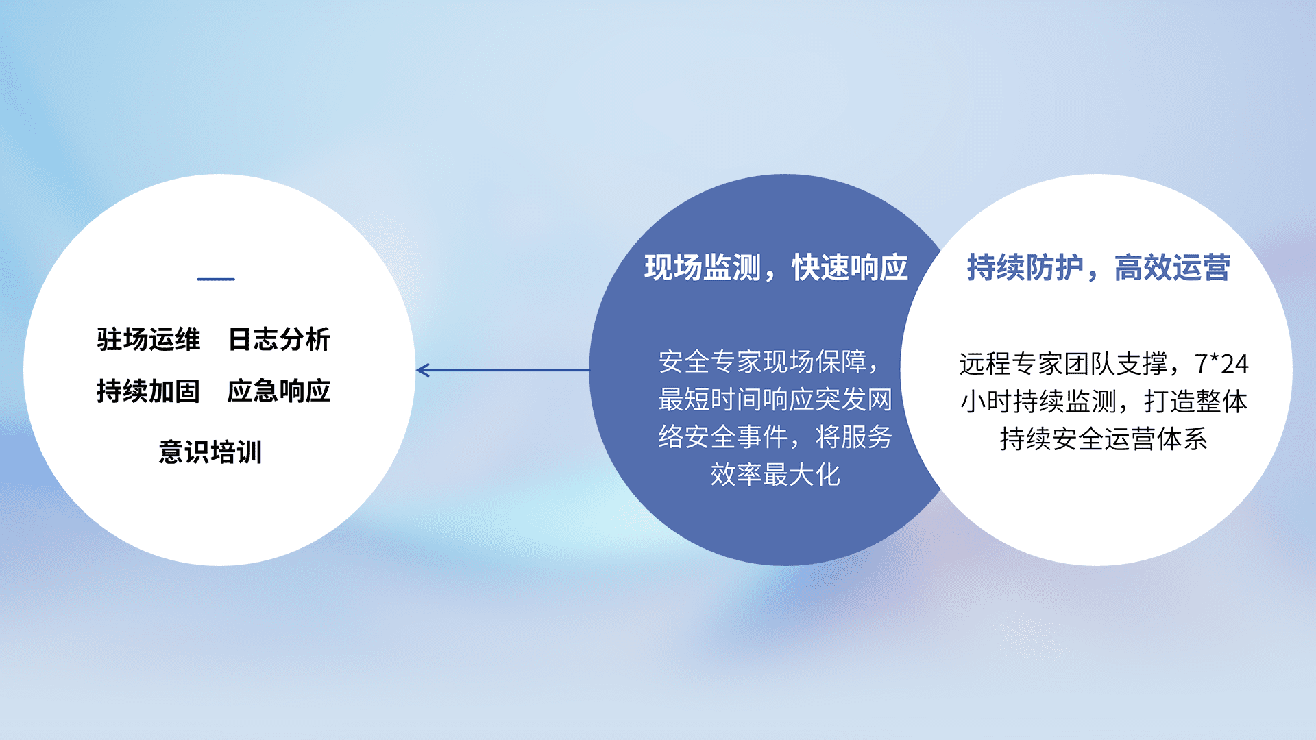 针对客户行业特性,,,,提供专属的一站式安全管理服务,,帮助客户全面感知网络空间威胁,,通过安全专家的线上、、线下防护支持,,,,实现风险闭环,,,,将安全保障常态化,,为客户打造常态化安全运维运营服务。。。。