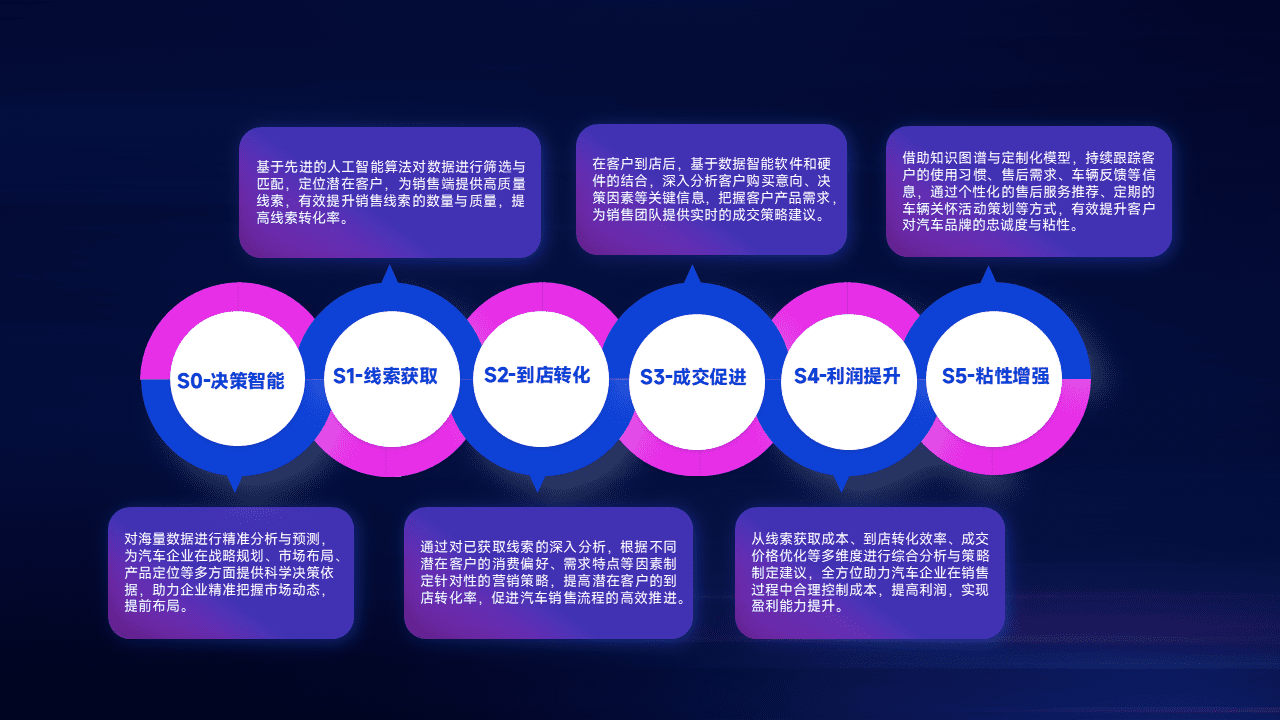 通过拓宽潜在客户来源、、、、优化线索分配并提高到店转化率,,,,以增强销售效率。。。同时,,,利用线索数据不断优化分析模型,,,,有效提升转化率,,,扩大营销影响力。。